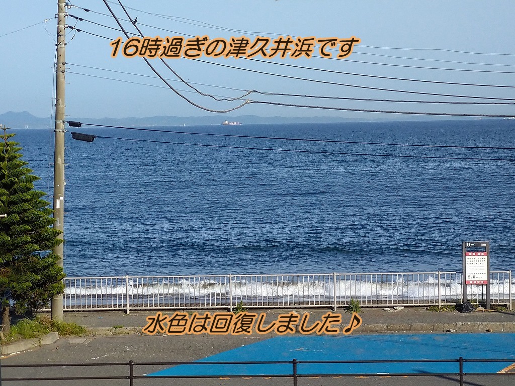 昨日後半からの南西強風で朝から波が高い状態でしたが、午後になるとかなり落ち着いてきました。お昼頃は波打ち際から数十メートルは白っぽい砂濁り状態でしたが、夕方には水色は透き通った青緑(青が強め)。海を見たら釣り人ならやる気が起きるこの時期としてはかなりいい水色になりました。