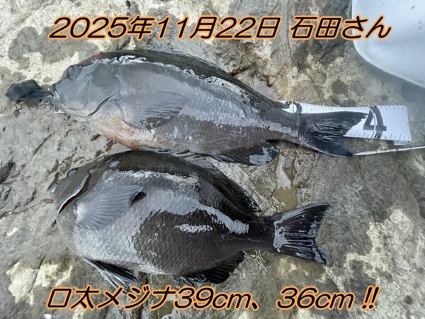 今日も釣果のお持込みやご投稿、電話やご来店での直接のご報告、ありがとうございました!フカセ釣りは口太メジナが徐々にいい感じになってきています。HPに掲載した以外にも30cm中盤の連発劇や30cm後半の複数ヒットなど良いお話がありました。真冬のような三浦南部一辺倒ではなく、三浦東部~南部の各地で釣果が出ているのが良いですね。毎年のことですが、海水温が下がり切る前の晩秋~初冬は三浦東部が特にお勧め。今年はここまでいい感じで来ていると思います。寒グレシーズンが本格化するのが実に楽しみです。