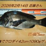 ■日付:2月14日 ■天気:晴れ ■潮回り:中潮 ■場所:三浦東部 ■お名前:近藤さん ■釣果:クロダイ42cm1090...