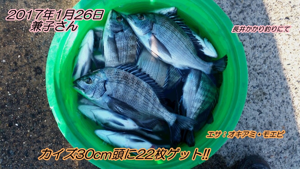 ■状況:『最近忙しく、釣りに行けずストレス溜まりまくりでしたが、やっと初釣りに行けました。開始直後からエサ取りがいて活性は高く、開始2時間がたちエサ取りが静かになった直後、オキアミで30センチの本命(^^)その後もコンスタントに釣れ、自己記録タイの22枚の大満足の初釣りでした(^^)オキアミで15枚、モエビで7枚です。』