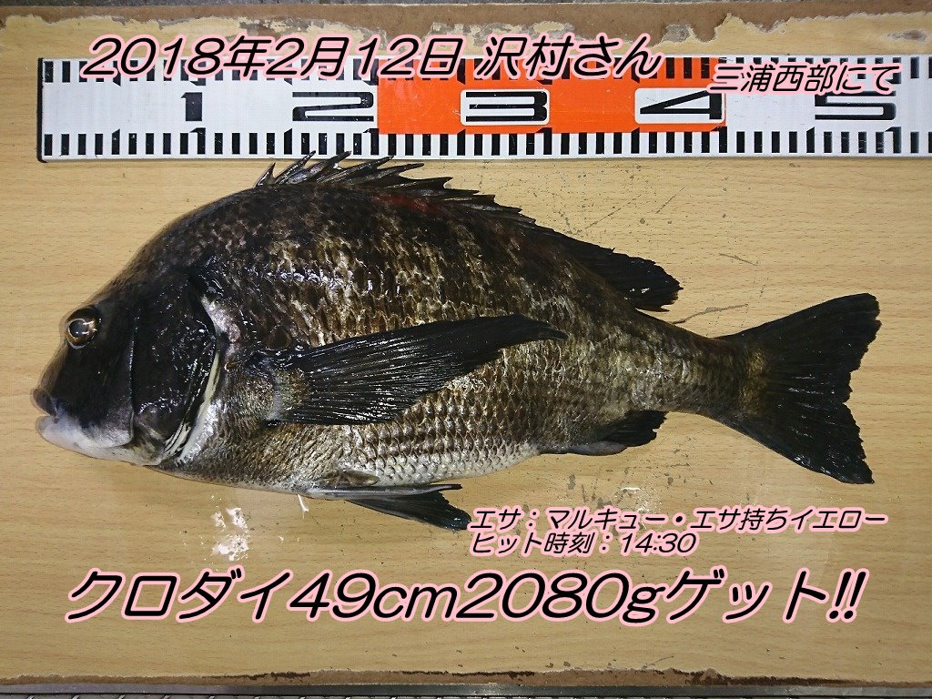 ■コメント:沢村さんが今年2匹目の2キロオーバーのクロダイをゲットしました。付けエサはマルキューの練りエサの新製品『エサ持ちイエロー』です。沢村さんによるとこれまでの製品に比べ遠投しても針から外れづらく、エサ取りに食われてもエサが残りやすかったとのことです。おめでとうございます!