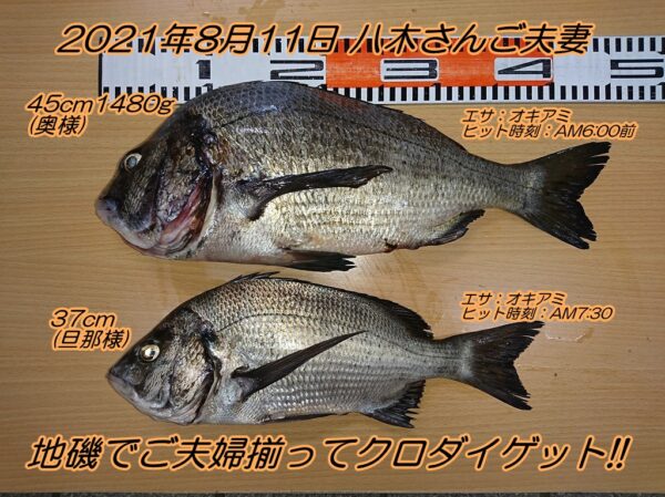 ■釣果:クロダイ45cm1480g(奥様)、37cm(旦那様)