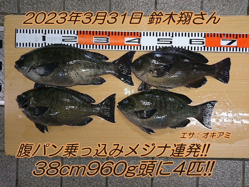 ■釣果:口太メジナ38cm960g頭にキープ4匹(リリース多数)、クロダイ49cm2190g
