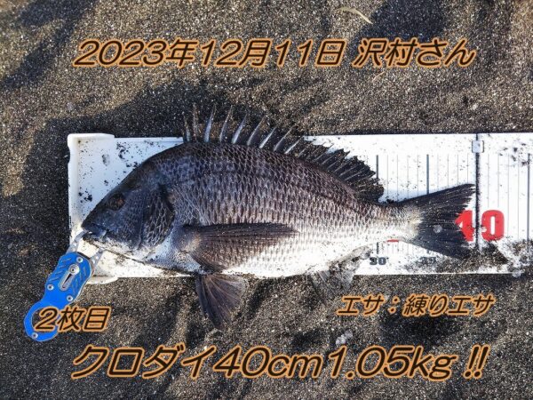 ■コメント:クロダイ狙いの渚釣りで快進撃を続ける沢村さんがまたまたやりました!!今回は40cm超級の銀ピカ良型クロダイを3枚ゲット!釣り場ごとの必釣パターンや、海底地形などの特徴を完璧に把握しているからこそ、毎回素晴らしい釣果を出せるのだと思います。おめでとうございます!