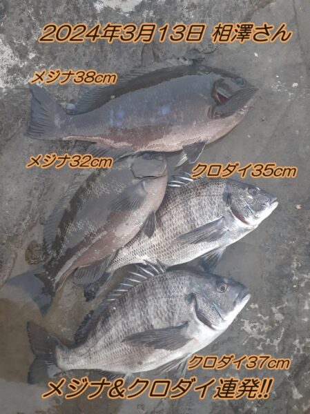■釣果:口太メジナ38cm、32cm、クロダイ37cm、35cm