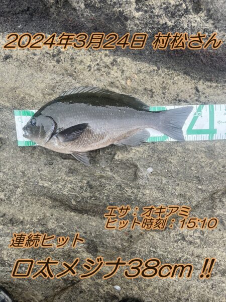 コレは時合いかと気合いを入れて仕掛けを流すと38cm、36.5cm、37cmのメジナが連発!!