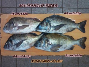 ■釣果:クロダイ51cm2130g、48cm2155g、48cm1855g、46cm1810g