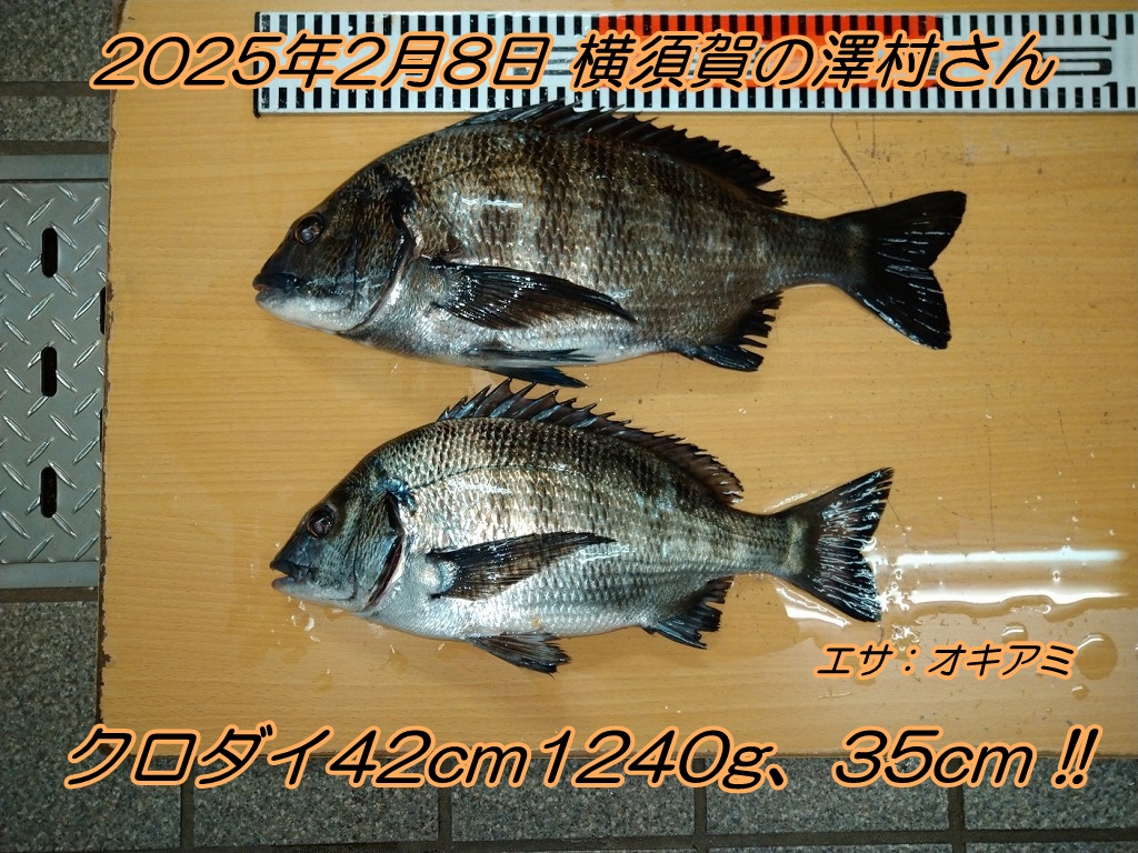 ■コメント:2/8(土)、地磯で竿を出した横須賀の澤村さんが良型クロダイ&メジナを釣り上げて凱旋帰店♪とても嬉しそうにお持ち込みいただきました!(^^)!