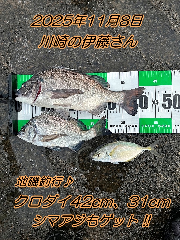 ■コメント:三浦地磯釣行、メーカー主催の磯釣りトーナメントなど、幅広くフカセ釣りを楽しんでいる伊藤さん。昨日11/8はいつもとは違う釣り場で竿を出してみたいとのことで、お店でご紹介した初見場所にチャレンジしました!!