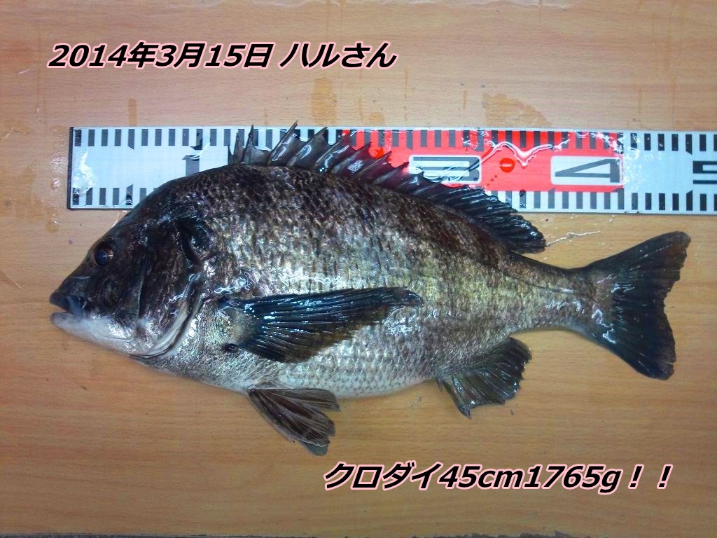 ■コメント:当店近隣からまたまた良型クロダイのお持ち込みです!夕マヅメ勝負で15時過ぎからの短時間釣行で結果を出されました。エサはオキアミ、ヒット時刻は17:30頃です。エサ取りはほぼナシ、オキアミの頭だけが取られるアタリが数回あったものの食い込まず、ガン玉を外して0号の完全フカセに変更するとビンゴ!棒ウキがスポッと入って本命がヒットしたそうです。おめでとうございます!