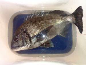 ■コメント:食い渋りの中、見事なクロダイを釣り上げました!!目標の50cmの大台到達です。年無しクラスとは思えないほどヒレも鱗も綺麗で、私(野崎)がここ最近見た年無しクロダイの中では一番若々しい魚体でした(^o^)40cmバッカンからはみ出そうなその姿は貫録十分!!おめでとうございます!