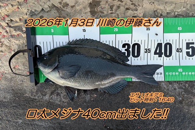 その後、16時40分頃の最後の1投で40cmの口太が釣れました!