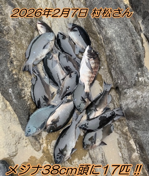 ■コメント:寒メジナ狙いで竿を出した村松さんにご報告いただきました♪この日は冷え込みがきつく、曇りのちみぞれ(雪)予報&北東強風の厳しいコンディションでしたが、果敢に突撃した結果はメジナ大漁!(^^)! 口太メジナ38cm筆頭にグッドサイズを総計17匹ゲットしました!クロダイ40cmも混じって極寒の磯釣りを満喫できたそうです(*^-^*) おめでとうございます!