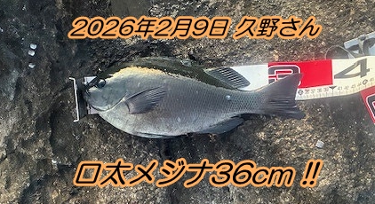 ■コメント:メジナ狙いで地磯に出掛けた久野さんから釣果報告が届きました♪前半3時間の超食い渋りから一転、後半3時間はフグ高活性という激しい変化に直面しつつ、その変化をチャンスに変えて好釣果を出しました!良型クロダイ&メジナゲット、おめでとうございます!