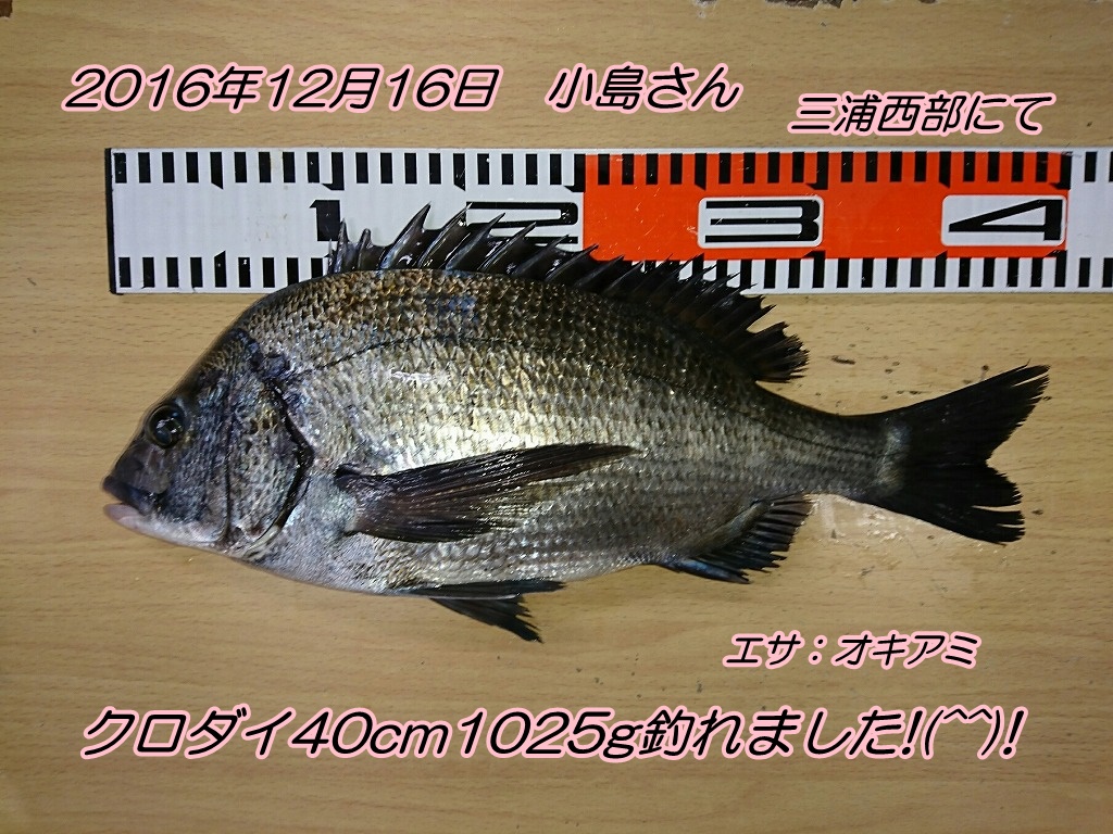 ■コメント:4日前に2枚のクロダイを釣り上げた小島さん。今日もお昼前から3時間ちょっとの釣行でクロダイを仕留めました。前回よりサイズアップできて良かったですね。おめでとうございます!