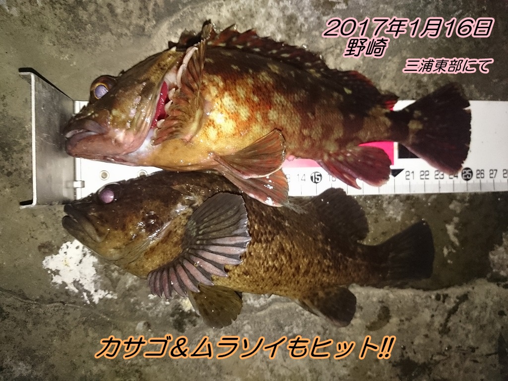 ■コメント:ここ1年ほどご無沙汰していた場所で14:10~20:10まで竿を出しました。潮位が上昇してきた16時頃、結構デカい魚がヒット!しかしベール戻りのミスで焦ってしまい、結果は痛恨のハリ外れ…。しょんぼりでした。17:45と17:55の口太33cm連続ヒットで萎えかけていた闘志に再び火が付き、18:20に40cm1055gが釣れました!!25cmのカサゴと22cmのムラソイは煮つけで最高に美味しかったです。