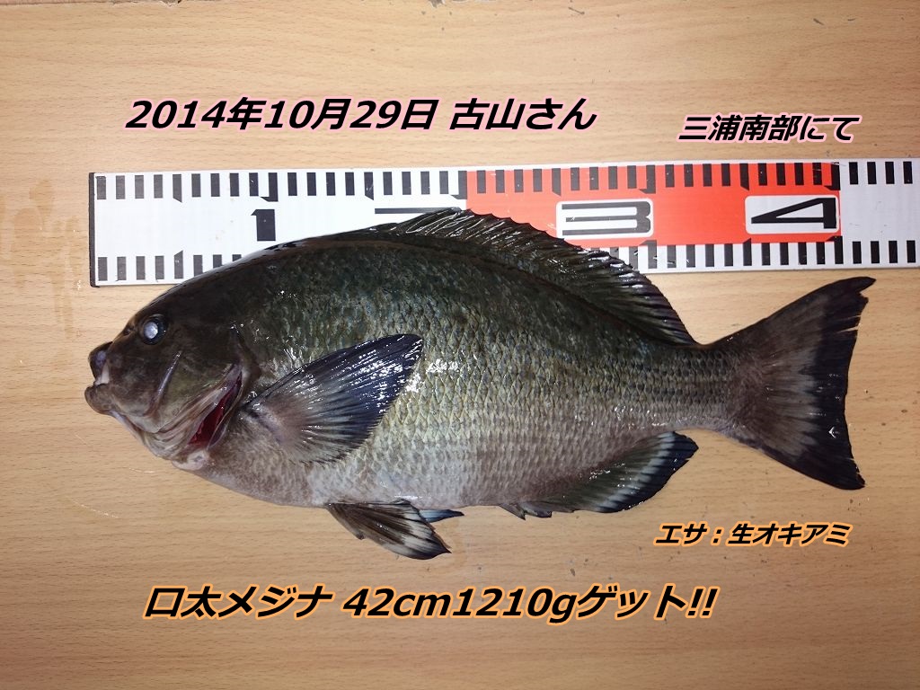 ■釣果:口太メジナ42cm1210g頭に約10匹
