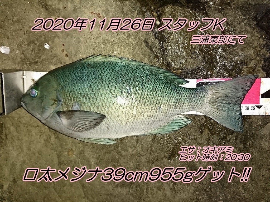 ■釣果:口太メジナ39cm955g、36cm、35cm、34cm、32cm×2匹