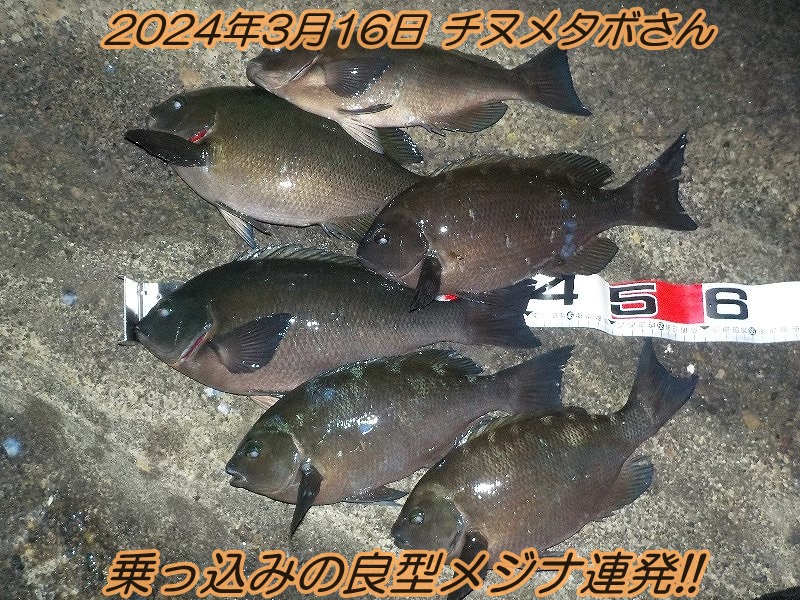 ■コメント:夕方からの半夜釣行で快進撃を続けるチヌメタボさんからまたもやメールが届きました。昨夜は41cm頭に6匹のメジナをゲット。どの魚も腹回りが膨れまくりの乗っ込み個体。これが浅場の根周りでヒットするのだからたまりません。スリリングなやり取りは超興奮ですね。おめでとうございます!