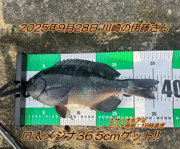 ■釣果:口太メジナ36.5cm、尾長メジナ34~25cm×6匹