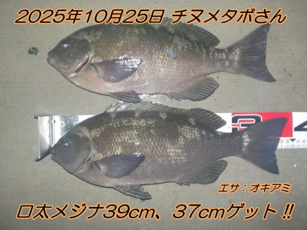 『雨、寒さ、北東強風』という厳しい状況を耐え忍び、僅かでも可能性がありそうなポイントをしらみつぶしに攻め続けたその努力と熱量はスゴイです!!今回は大台40cmには僅かに届きませんでしたが、口太メジナ39cm、37cm、35cmゲットは流石の一言です。おめでとうございます!