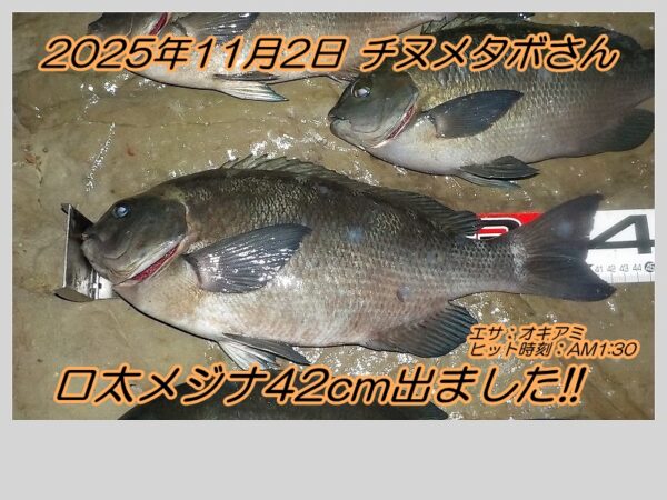 ■釣果:口太メジナ42cm、38cm、38cm、38cm、36cm