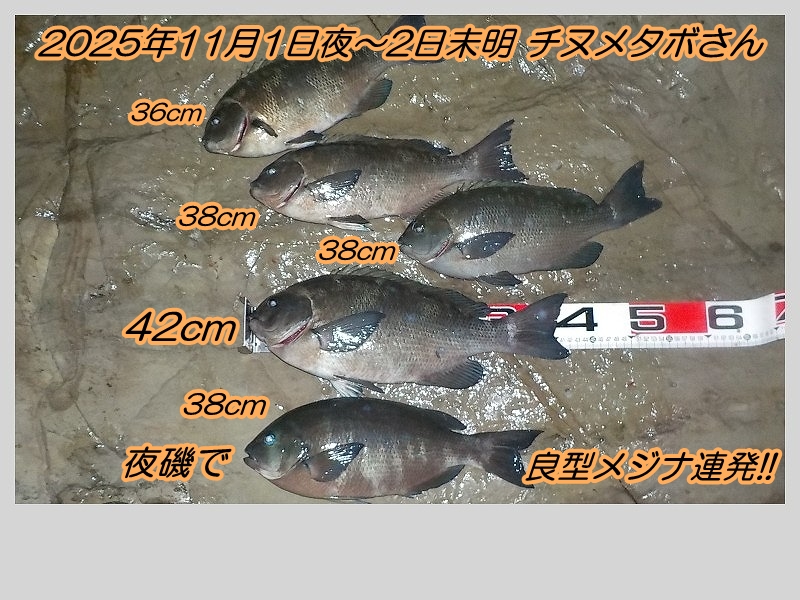 ■釣果:口太メジナ42cm、38cm、38cm、38cm、36cm