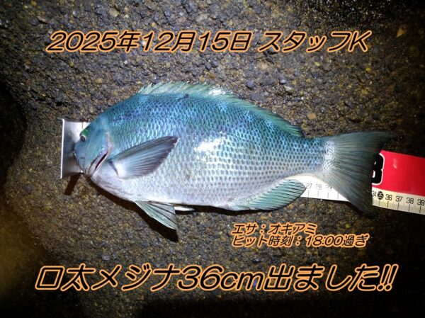 ■釣果:口太メジナ36cm、25cm、尾長メジナ20cm
