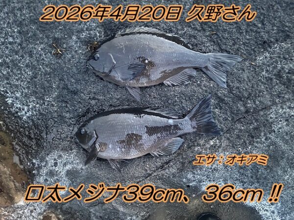 口太メジナ39cm、36cmゲット!