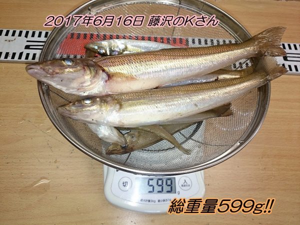 ■コメント:藤沢のKさんが、特エサ・チロリでジャンボギスをゲットしました!27cm159gは当店のシロギス歴代ランキングに入る大型です!13匹総重量599gもさすがです。おめでとうございます!