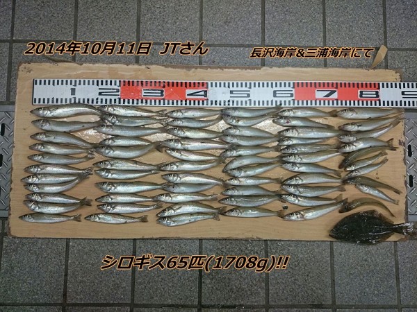 ■コメント:投げ釣り師のJTさんが自己記録更新の65匹、1708gのシロギスをゲットしました。台風の余波が心配されましたが、ポイント移動と狙い方の工夫を繰り返して見事に釣果を伸ばしました。おめでとうございます!
