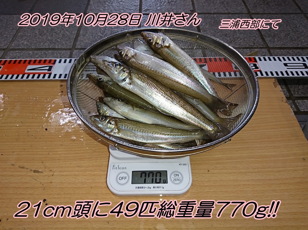 ■コメント:この秋も好調が続く川井さん。今日も49匹総重量770gのシロギスをゲットしました。ピンギスに加えてフグやベラも元気一杯で我慢の釣りとなりましたが、狙い通り、後半にサイズをアップさせました。おめでとうございます!