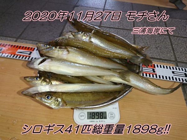 ■コメント:モチさんが41匹のシロギスをゲットしました。41匹中ほとんどが19~18cmクラスで、総重量は当店今年最高の1898gでした。毎年見られるシーズン最後の大釣り。11月中旬までに見られることが多く、今か今かと気を揉んでいましたが、モチさんがやってくれました!自己記録を大幅に更新する総重量1898gのシロギス、おめでとうございます!