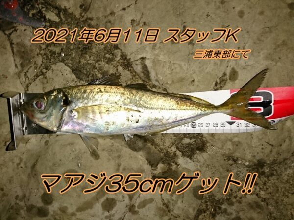 ■コメント:昨日半夜釣りに行ってきました。今回は水深3m程度の浅場で竿を出しました。海水温が上がってくると浅場でも大型メジナ、クロダイ、大きなマアジが来るので侮れません。昨日は小サバ軍団に包囲されてなかなか思うような展開になりませんでしたが、39cmと35cmのマアジ、32cmのメジナが来てくれました。エサがすぐに盗られるのでとにかく手返しを重視して投入後15秒で仕掛け回収。これをひたすら繰り返しました。ウキ下は1m、エサはオキアミです。電気ウキが引っ手繰られて暗い海中へと消えていくマアジのアタリはまさに電撃。本当に病みつきになりますね。マアジの型が良かったので小サバで苦労したのも吹っ飛びました。またチャレンジします!