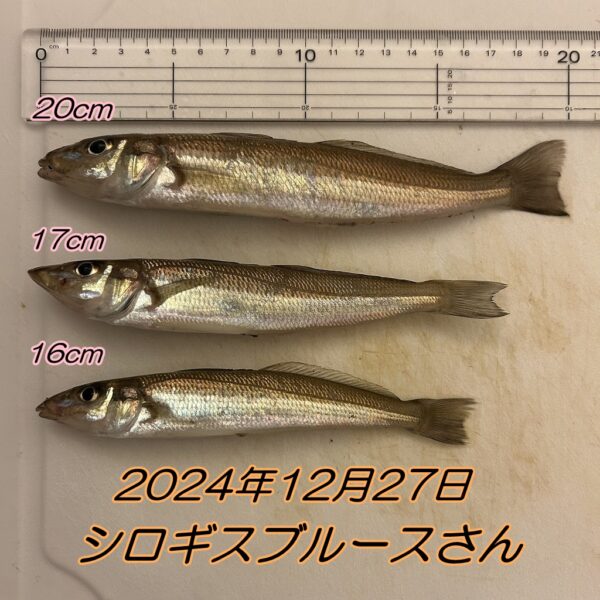 ■コメント:シロギスブルースさんから12/27(金)の投げ釣り釣行報告が届きました♪時期的に遠浅サーフのシロギス釣りは厳しかったそうですが、沖の深みを直接狙える小磯への移動が大正解!!越冬ギスの溜まり場だったのでしょうね。20cm筆頭に3匹の釣果はお見事です!(^^)! おめでとうございます!