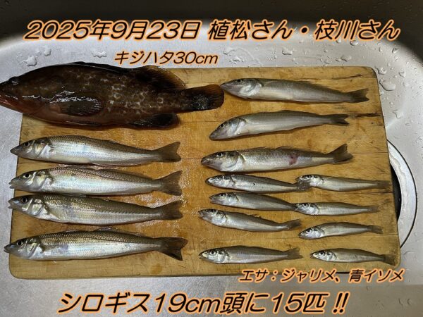 ■釣果:シロギス19cm頭に15匹、キジハタ30cm