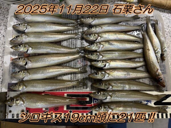 ■コメント:金田海岸で投げた石栗さんにご投稿いただきました♪落ちギス最終盤を迎え、当店周辺サーフでは好釣果と貧果が入り乱れる状況になっています。石栗さんは『糸ふけ+向こう合わせ作戦』で近距離を中心に探り、順調に数を伸ばしているそうです。アタリの拾い方、針掛かりのさせ方など、とても参考になりました。シロギス好釣果おめでとうございます!