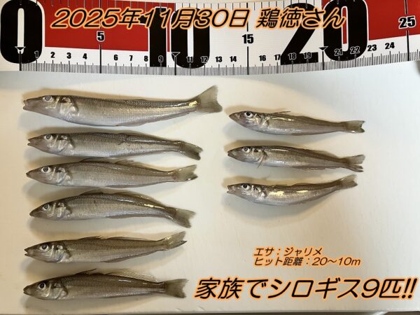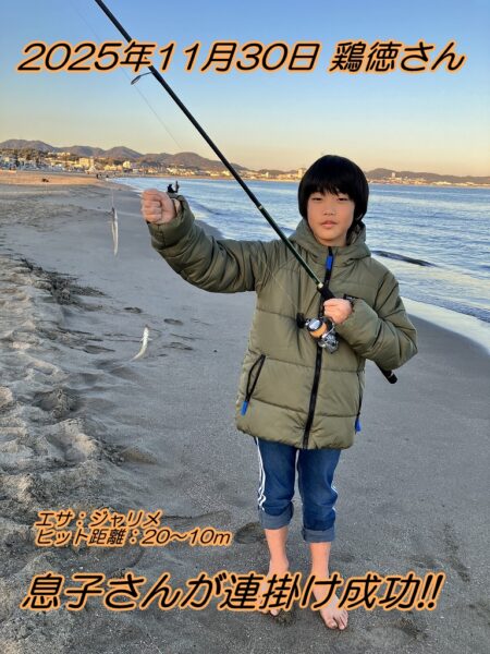 鶏徳さんファミリーには秋恒例のミカン狩りからのちょい投げ釣り。今年も短時間で9匹のシロギスをゲットしました。息子さんは狙って連掛け達成と釣行ごとにメキメキと腕を上げこの先も楽しみです。ミカン狩りとちょい投げのシロギス、ジャンルの違う秋の三浦の風物詩を1日で楽しめて良かったですね。おめでとうございます!