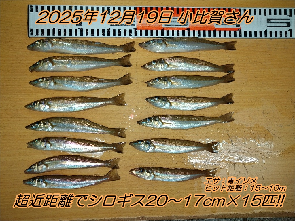 ■コメント:先週ヒネクラスだけでツ抜け(10匹)を達成した小比賀さんが今回は同じサイズを15匹ゲットしてお店に持ってきてくれました。15匹合計で675g。1匹平均45gと良型が揃いました。このクラスが15m以内で次から次へとヒットするのはたまりませんね。前回に続くナイス釣果、おめでとうございます!