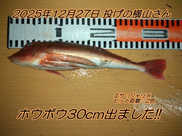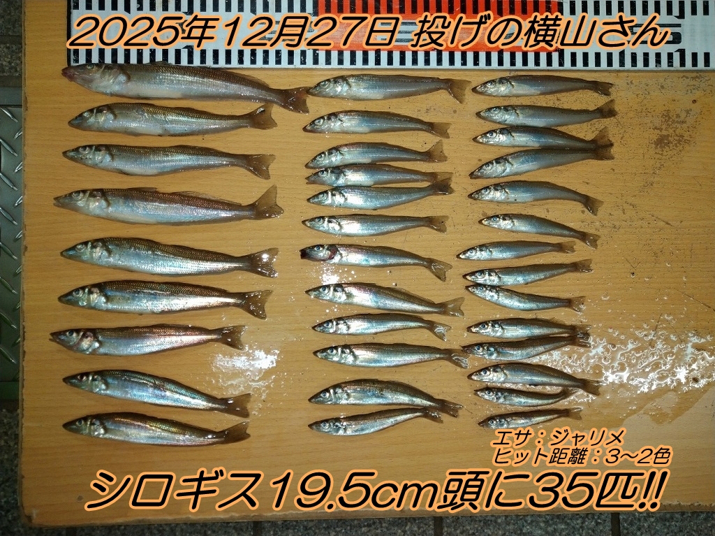 ■コメント:前回釣行では投げ釣りで思わぬゲストのクロダイを釣り上げた横山さん。今日は本命のシロギスは35匹。15cm以上も9匹混じって笑顔でお店に戻ってきてくれました。距離が少し遠くなったとはいえまだ行けそうですね。釣り人は全くいなくて貸し切り状態。エサ取りも少なく釣りやすさでは今が一番かもしれません。シロギス大漁にホウボウ、おめでとうございます!