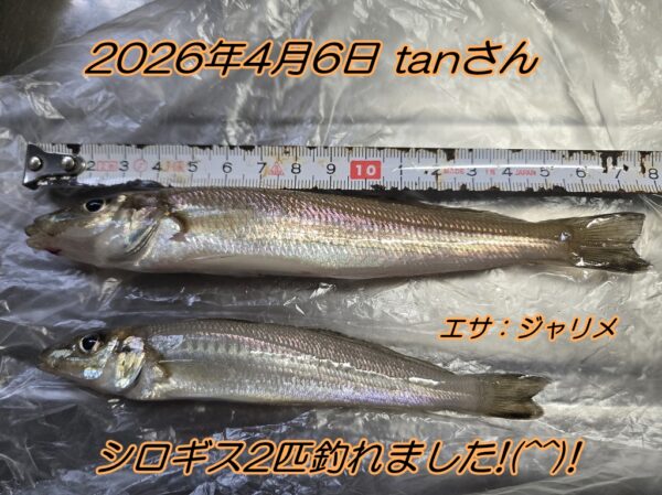 ■コメント:4/3にシロギス8匹の好釣果を出したtanさんにご投稿いただきました♪同じポイントに入るも、今日はお魚さんの活性が低かった模様。しかし遠投作戦で本命シロギスを2匹キャッチ!!おめでとうございます!
