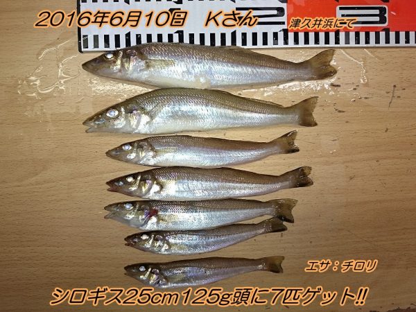 ■コメント:昨日夕方釣りたてホヤホヤの良型シロギスを持ち込んでくれたKさんがその後もシロギスを連発しました。一番大きいシロギスは昨日の魚をさらに上回る25cm125gでした。大型のシロギスに照準を当てて結果を出すのは見事です。おめでとうございます!