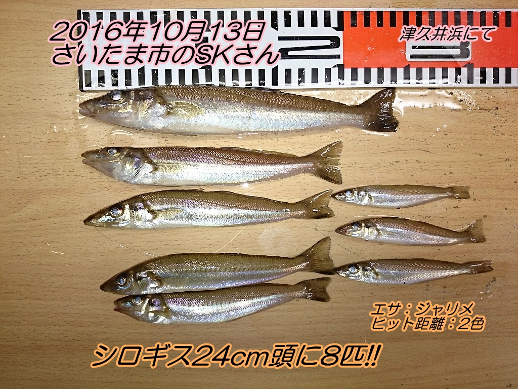 ■コメント:電車を乗り継いで当店周辺のサーフで投げたさいたま市のSKさん。北東強風と一時的にパラっと来た小雨にも負けず本命のシロギスをゲット!!最大は24cm106gの良型でした!(^^)!おめでとうございます!